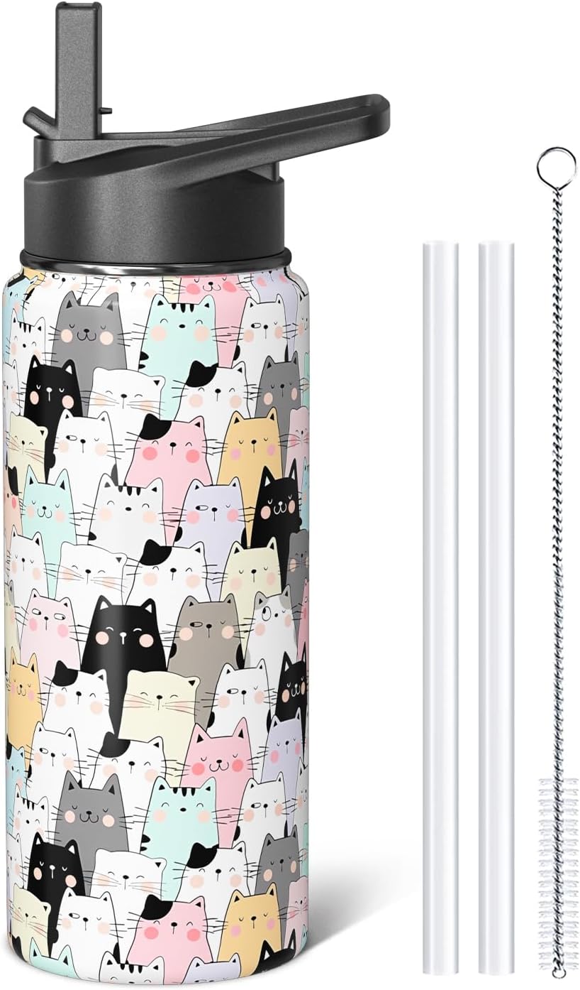 - Individually Boxed: The 18oz cats print travel sports water bottle with handle comes in individual gift boxes, each containing two straws and a cleaning brush for easy gifting.