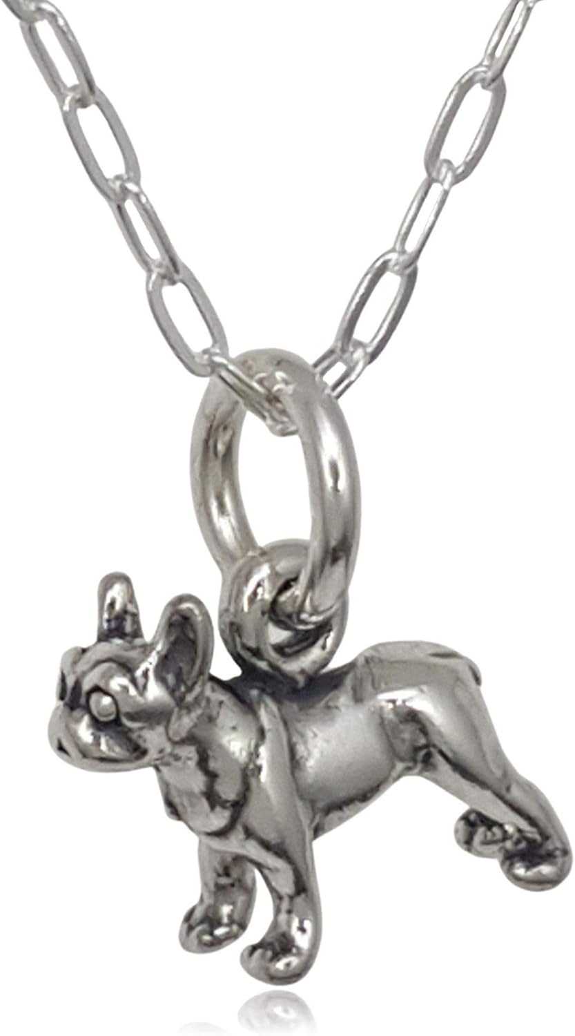 EnCharmed Sterling Silver Tiny Boston Terrier Dog 3D Charm Necklace, 18"