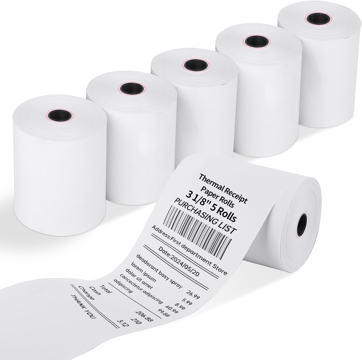 Thermal Receipt Paper Rolls 3 1/8" x 230' 5 Rolls Compatible with POS Systems, Cash Registers - BPA Free, Premium Quality Credit Card Receipt Paper