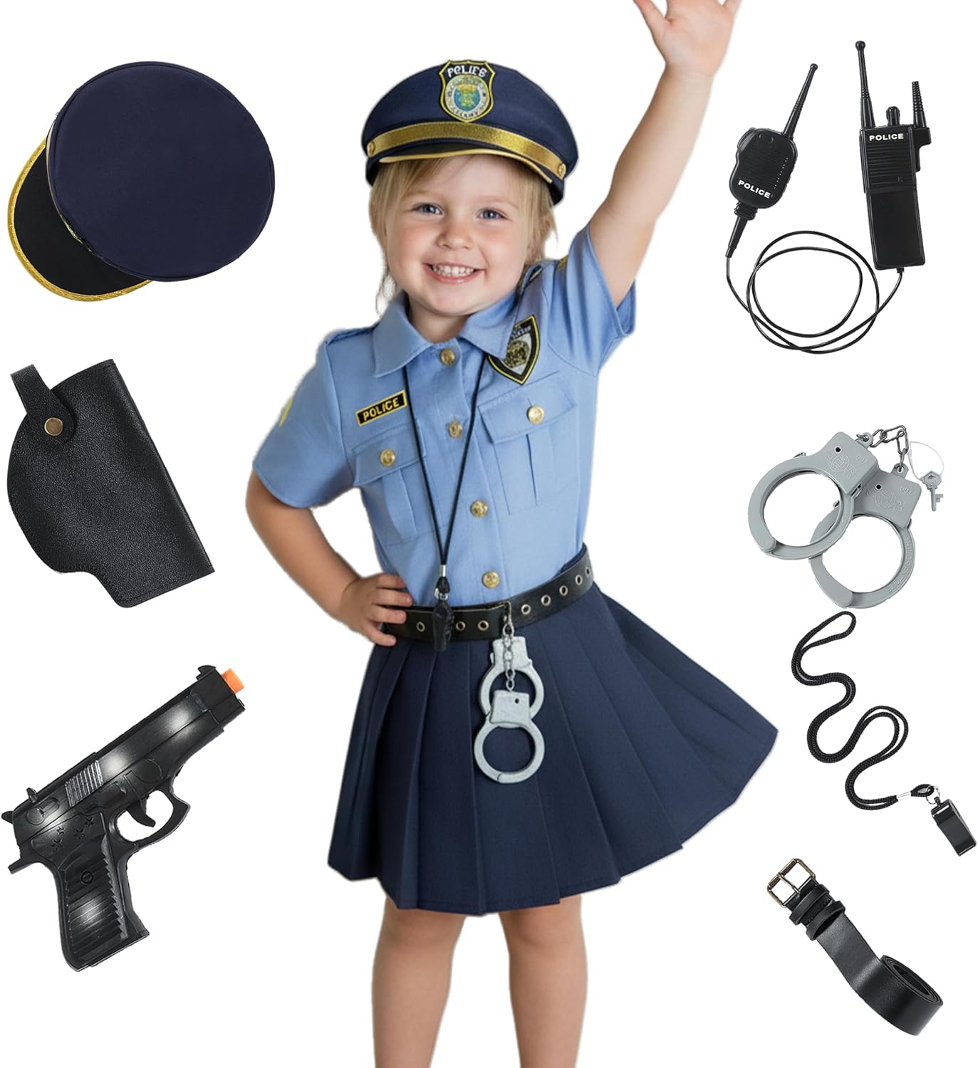 Seawhisper Toddle Kids Police Officer Halloween Costume for Girls Accessories 2-14