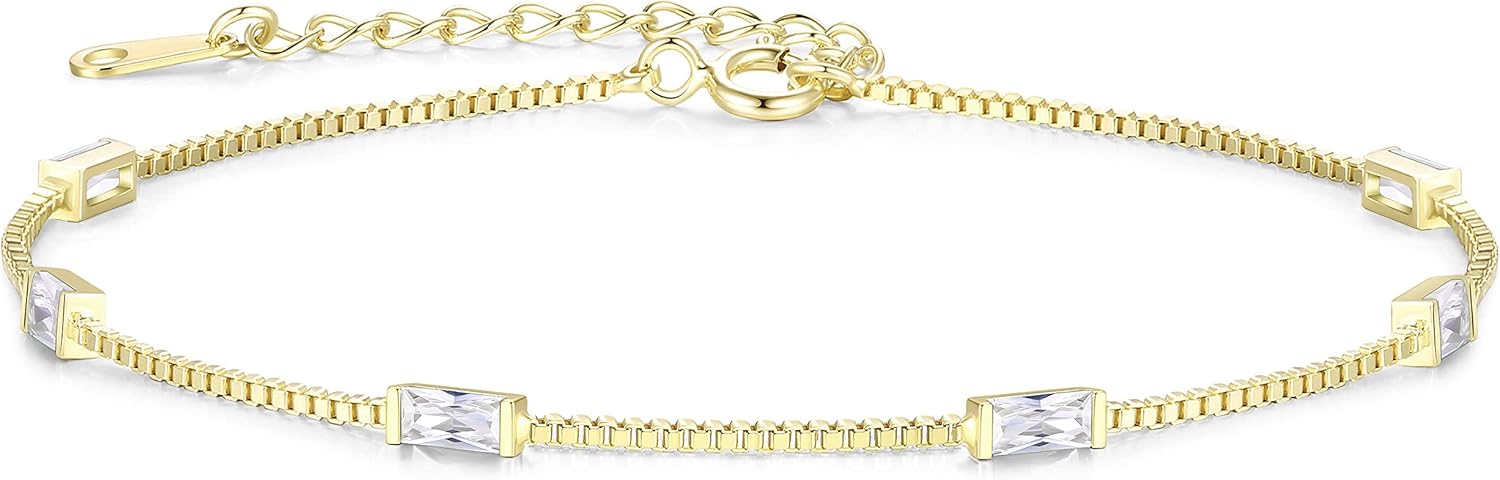 LOUISA SECRET Birthstone Bracelets for Women, 925 Sterling Silver Dainty Simple Women Charm Link Bracelet, Birthday Anniversary Christmas Jewelry Gifts for Women Wife Mom Her
