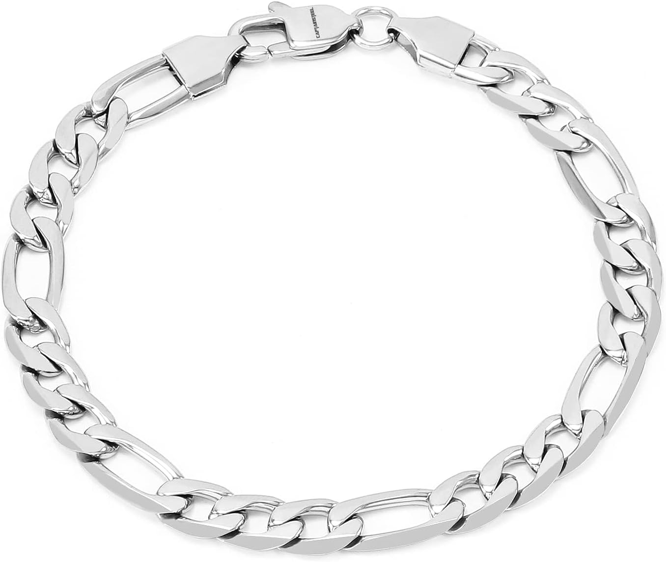 CaptainSteeL Stainless Steel Bracelet for Men,Figaro Chain Bracelet with Gift Box(7MM Width,7/7.5/8/9inch Length,Silver/18K Gold Plated)