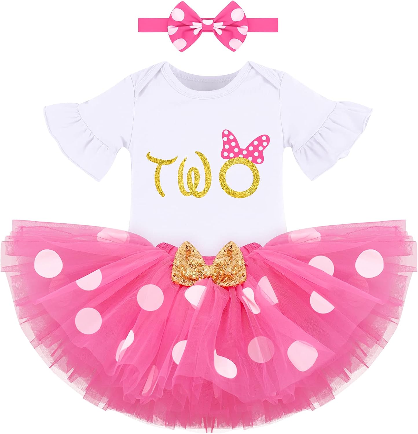 IBTOM CASTLE Baby Girl Clothes Ruffle 2nd Birthday Sequin Tulle Tutu Polka Dots Dress Princess Skirt Set for Photo Shoot