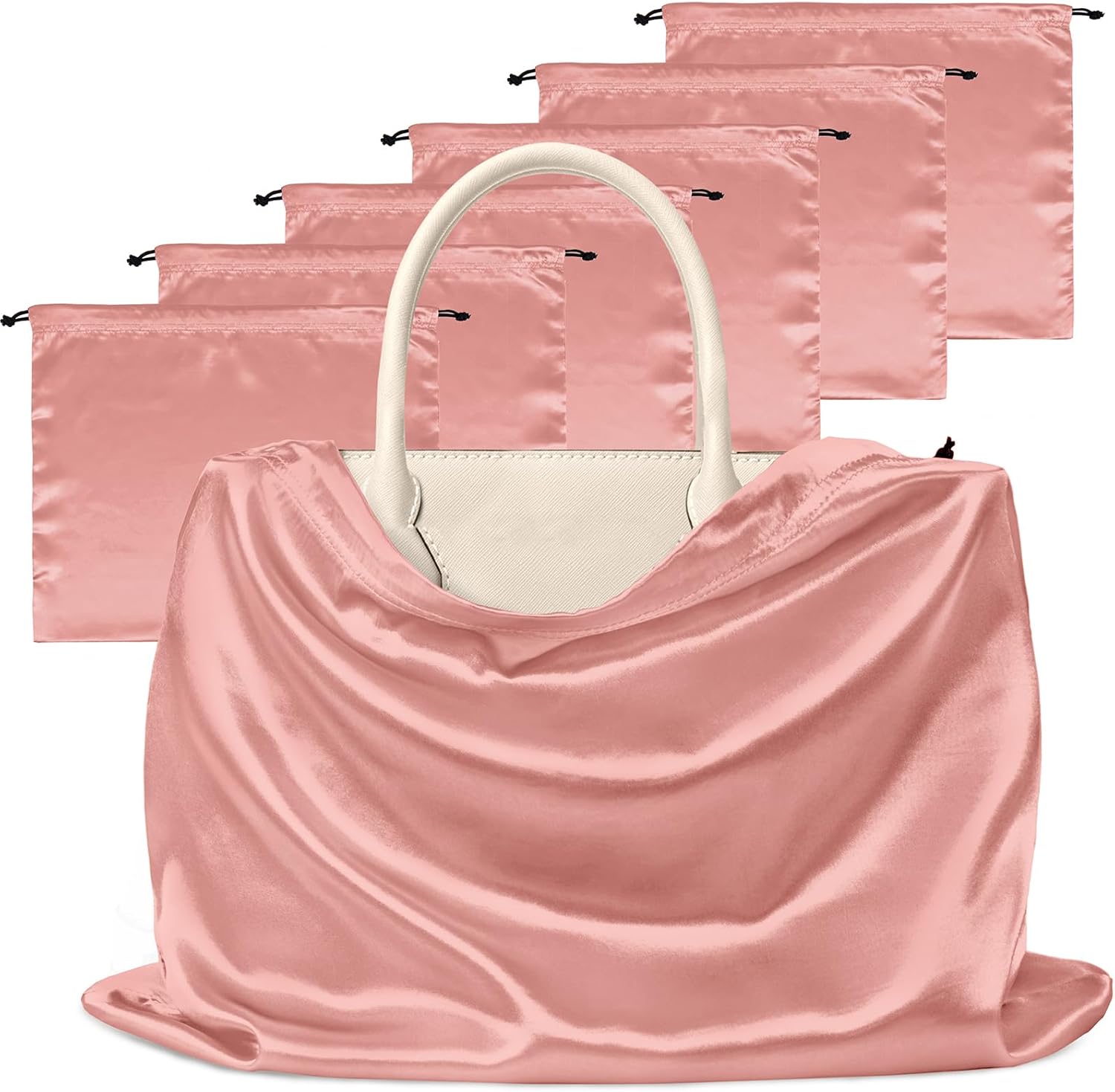 Manyshofu 7 Pack Satin Dust Bags for Handbags Storage, Silky Shoe Bag Rose Gold Drawstring Bags for Shoes & Purses - Silk Dust Cover Bag Dustproof Protector Travel Storage Pouch(19.6 x 15.7)