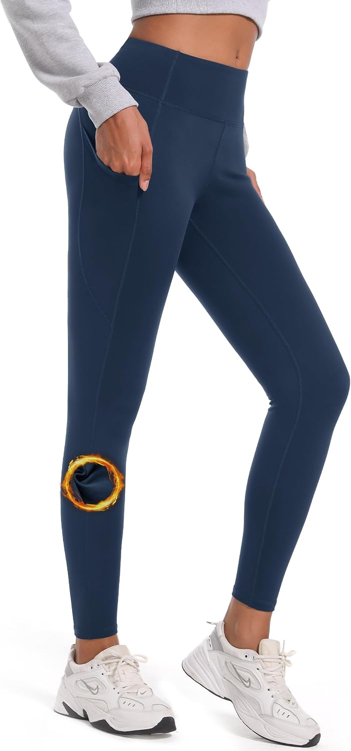 SEVEGO Women's 28"/31"/34"/36" Fleece Lined Yoga Leggings Thermal Winter High Waisted Workouts Pants with Pockets