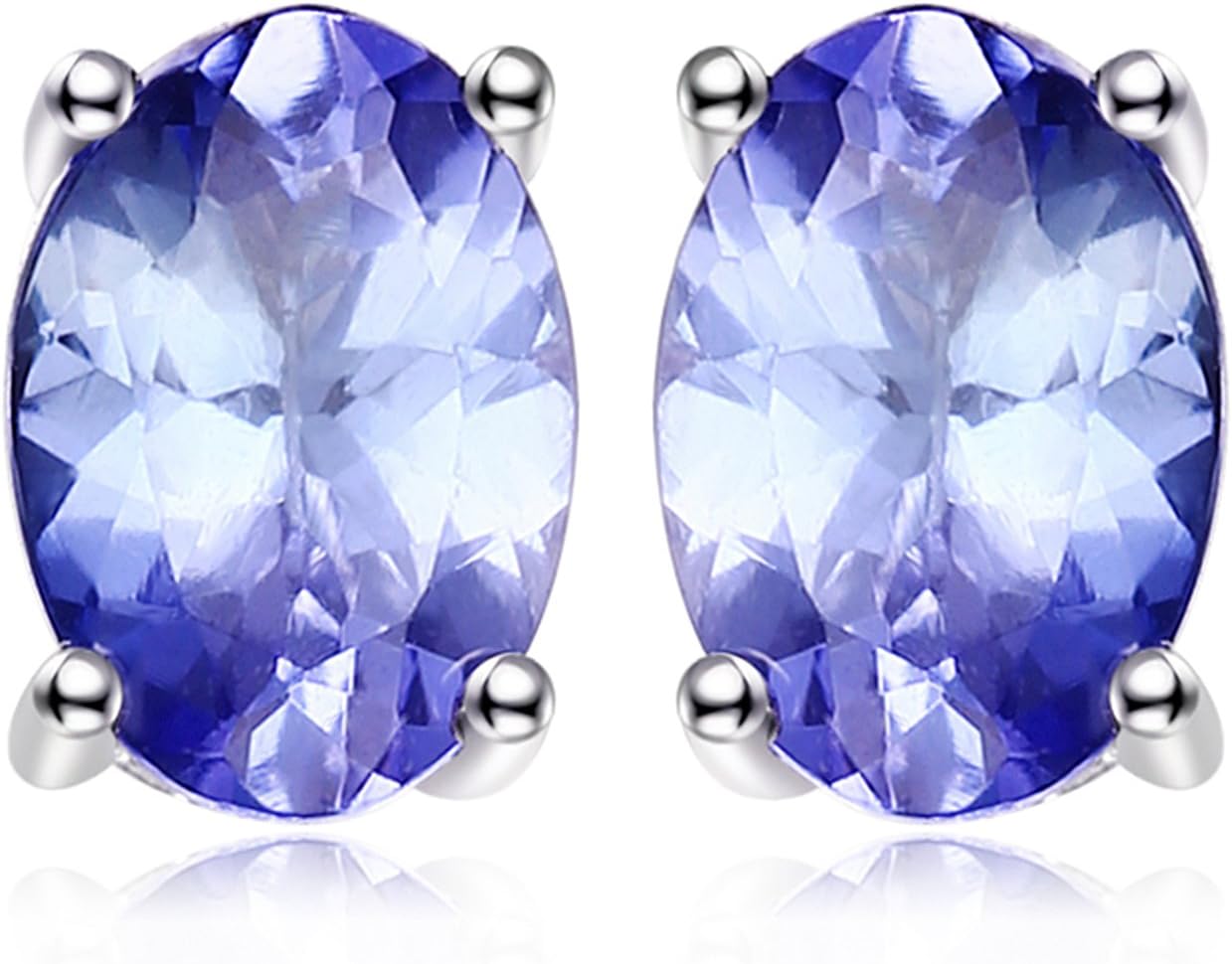 JewelryPalace Oval Cut 1ct Natural Blue Tanzanite Solitaire Stud Earrings for Women, 925 Sterling Silver 14k White Yellow Rose Gold Plated Earrings for Her, Fashion Gemstone Jewelry Gift for Girls