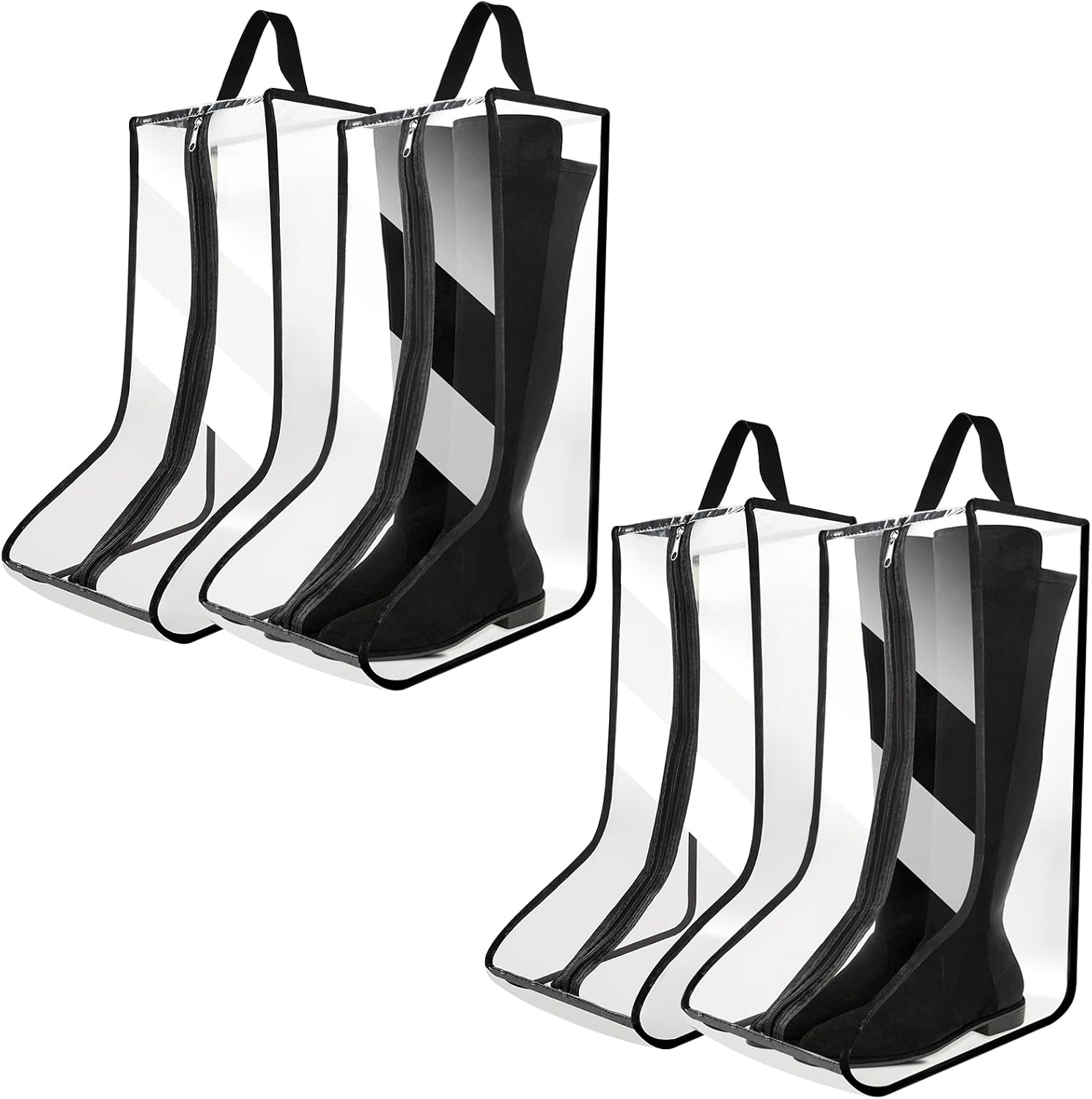 4Pack Boot Bags for Cowboy Boots Portable Tall Boot Storage Organizer Shoe Bags for Travel with Dust Covers (Clear Black)