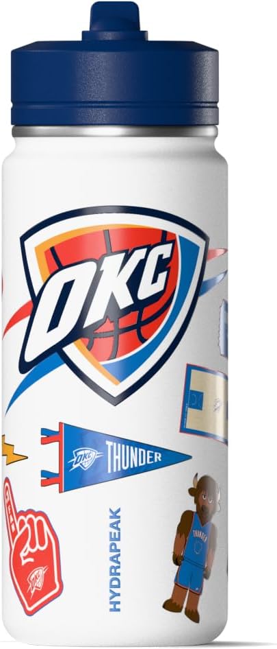 Hydrapeak x NBA Officially Licensed Oklahoma City Thunder 20 oz Active Water Bottle with Chug Lid and Handle Reusable Stainless Steel Double Wall Insulated Sports Gift for Kids/Adults