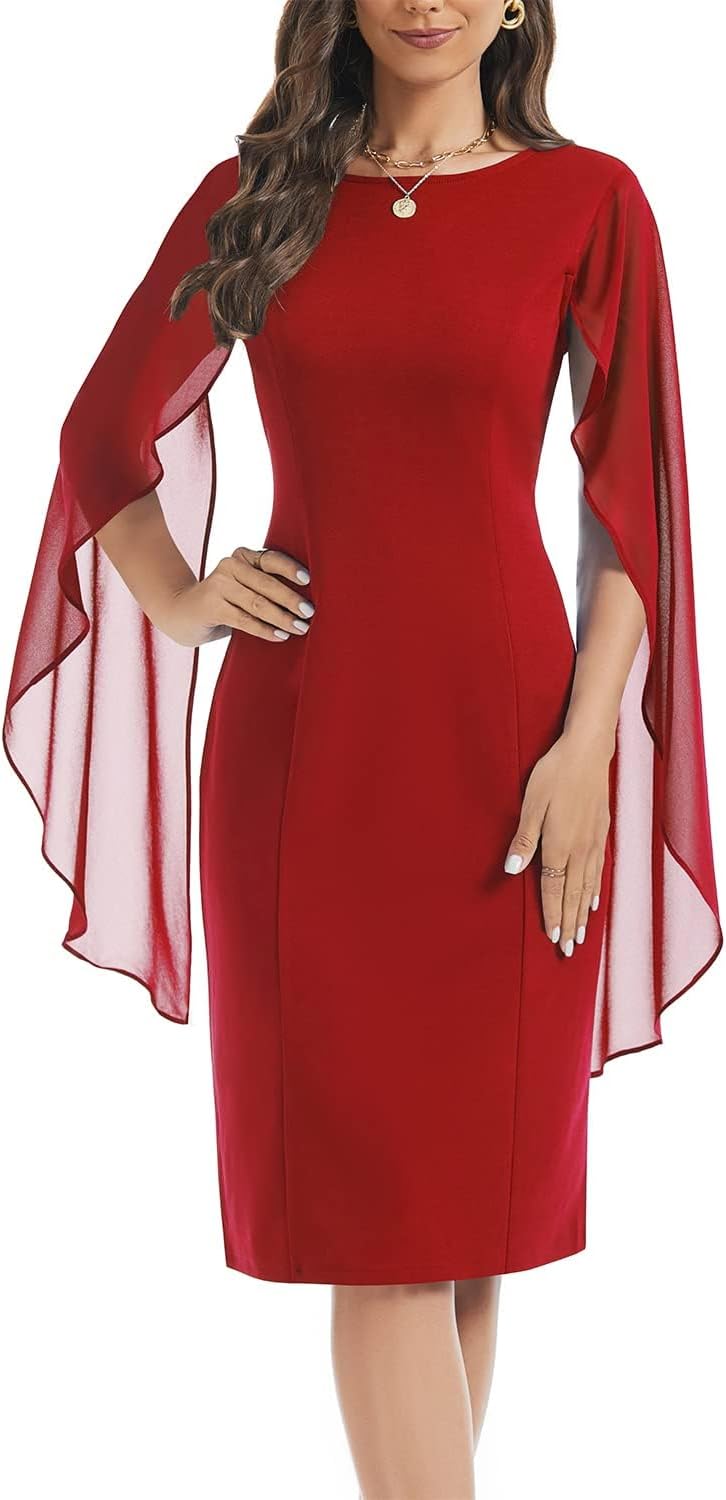 HELYO Women's Chiffon Cloak Sleeve Mini Cape Dress V-Back Semi-Formal Elegant Bodycon Wedding Guest Evening Cocktail Dresses
