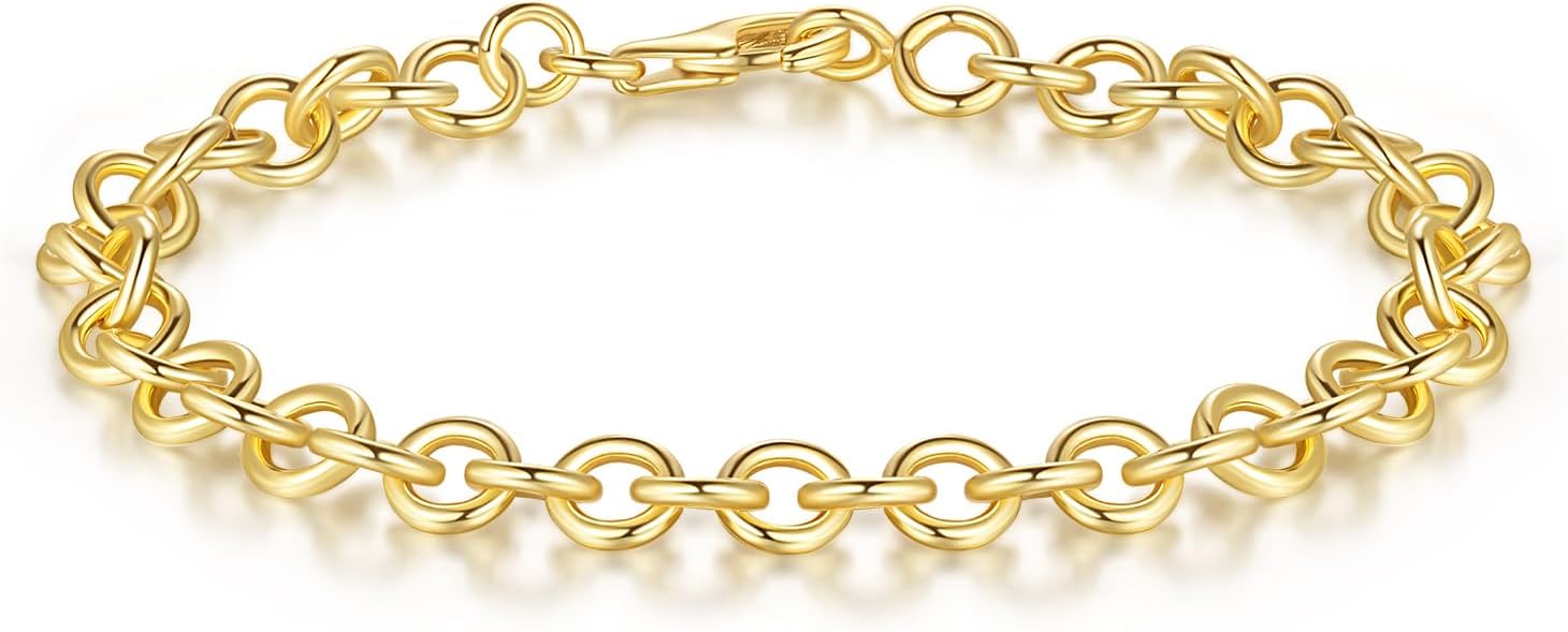 14K Gold Plated Bracelets for Womens Bracelet for Men Stylish O-Shaped Cuban Link Gold Chain Bracelets for Women Trendy Stackable 6.5-9in