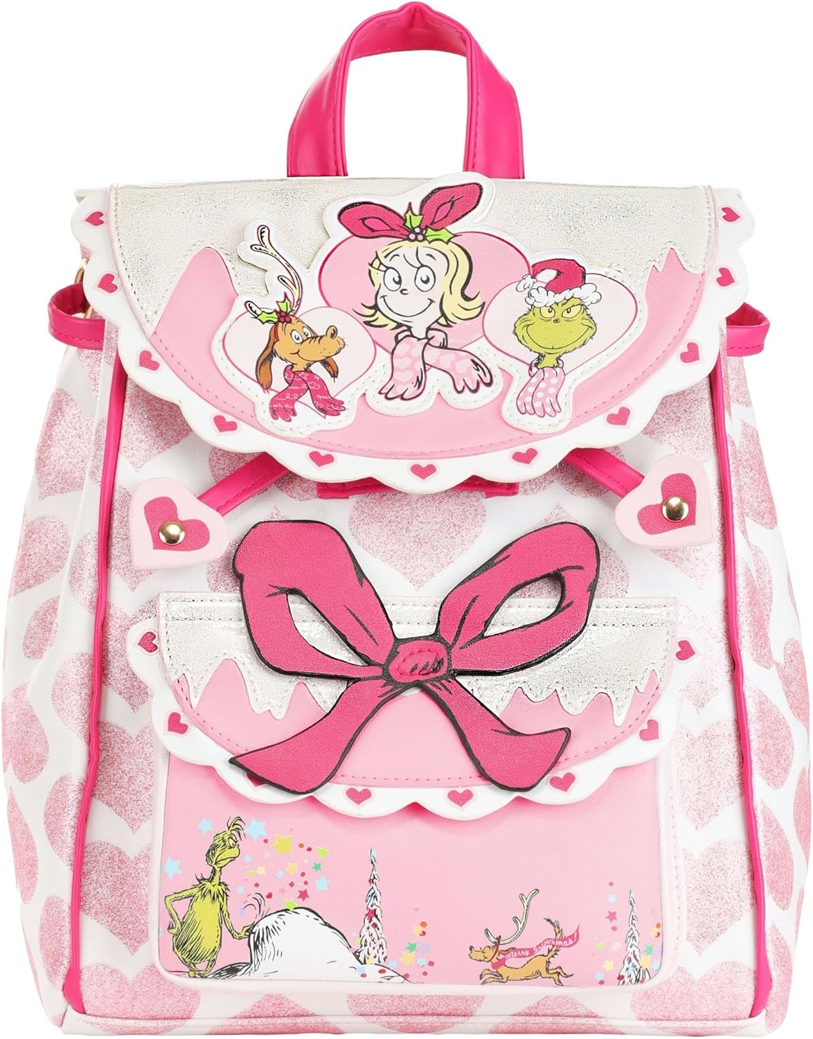- Adorable Design Details: Featuring embroidered, printed, and debossed elements, this mini backpack showcases Cindy Lou Who, Max, and the Grinch in a whimsical and playful design that captures the essence of the classic tale.