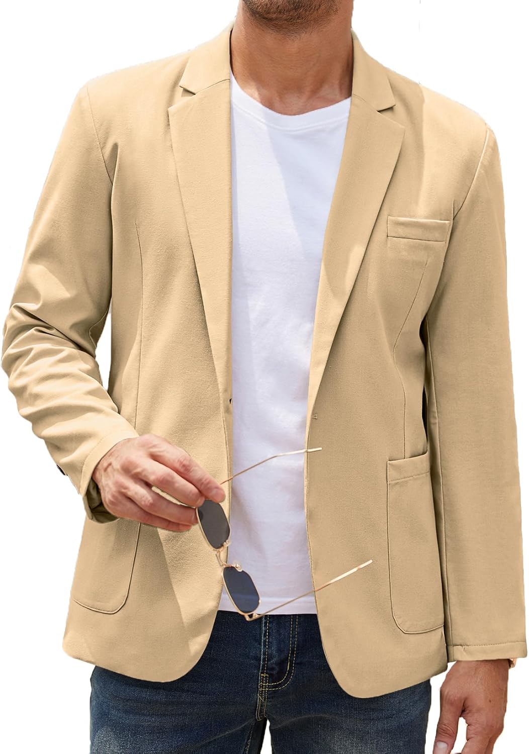 COOFANDY Men's Casual Linen Blazer Lightweight Regular Fit Sport Coat One Button Suit Jacket
