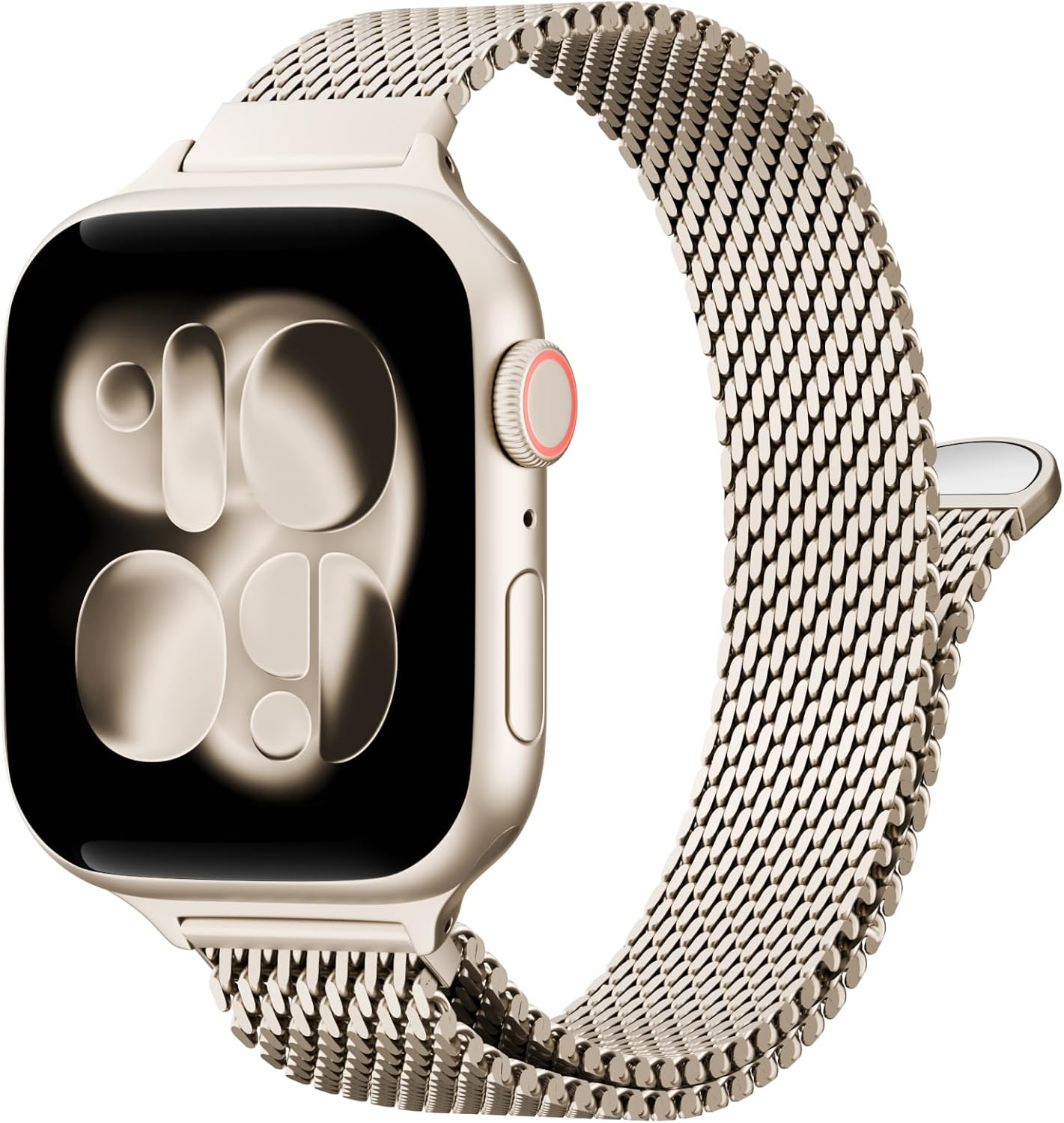 Slim Thin Milanese Loop Band Compatible with Apple Watch 38mm 40mm 41mm 42mm 44mm 45mm 49mm Women Men, Stainless Steel Mesh Magnetic Clasp Strap for iWatch Series 11 10 9 8 7 6 5 4 3 2 1 Ultra SE