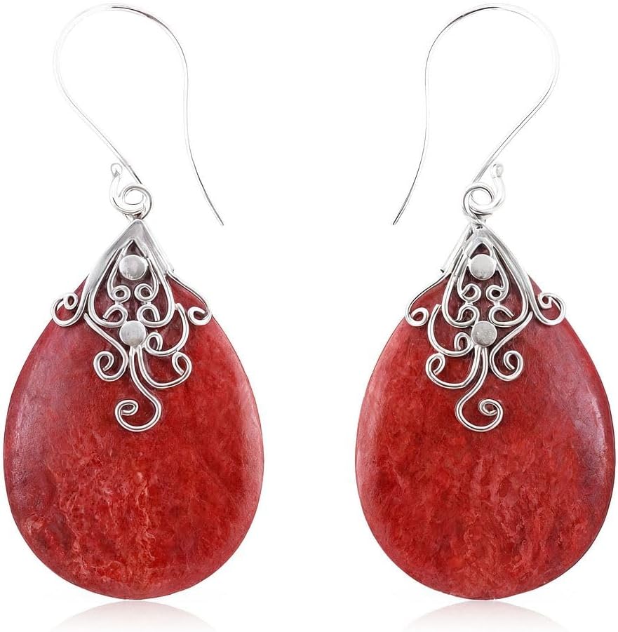 Red Coral Dangle Earrings for Women in 925 Sterling Silver - Dangling Drop Coral Earrings Handmade Birthstone Vintage Boho Jewelry Birthday Valentines Day Gifts for Women