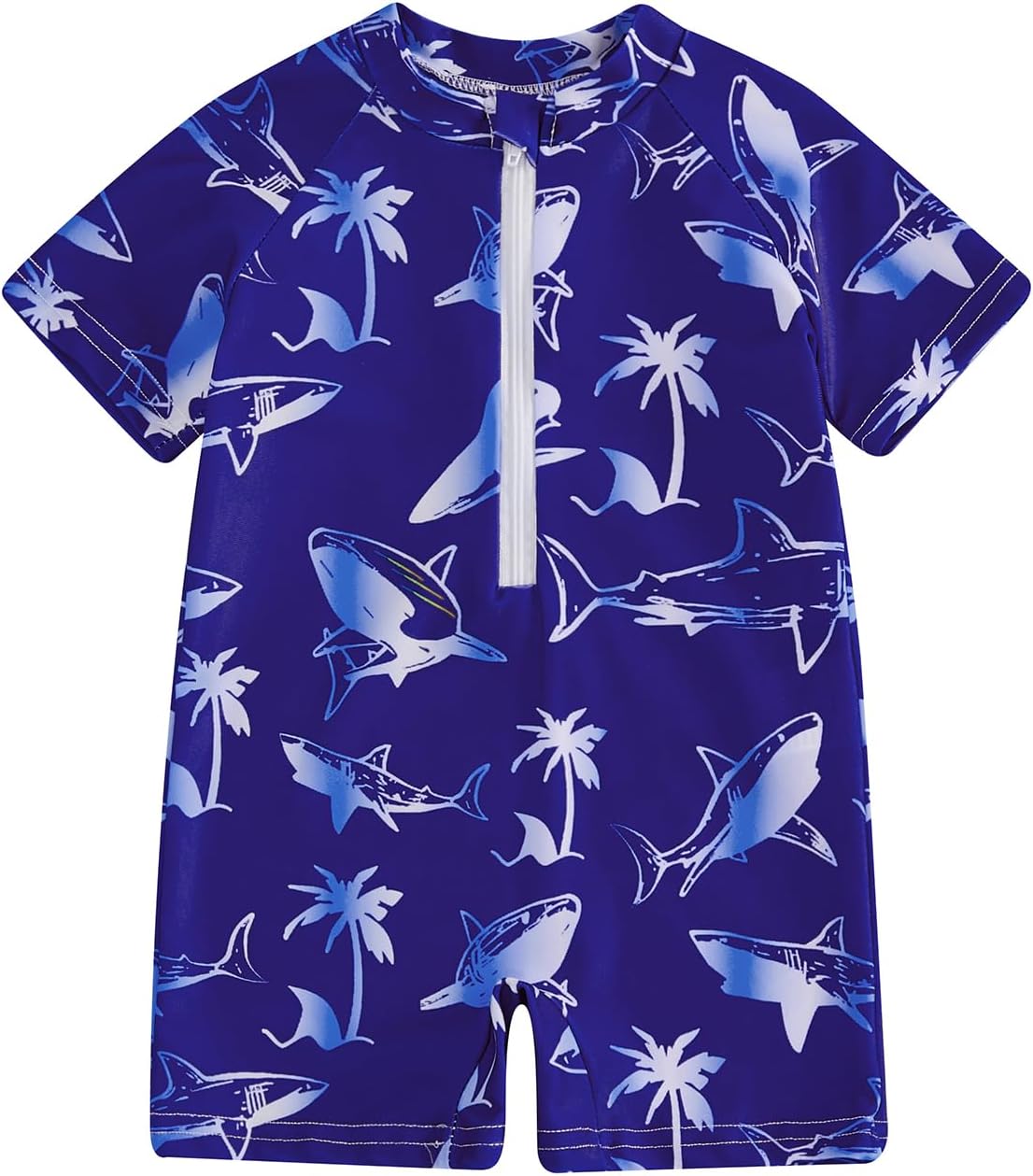 Toddler Baby Boys Swimsuit One Piece Rash Guard Bathing Suit Sun Protection Short Sleeve Zipper Beach Shark Swimwear