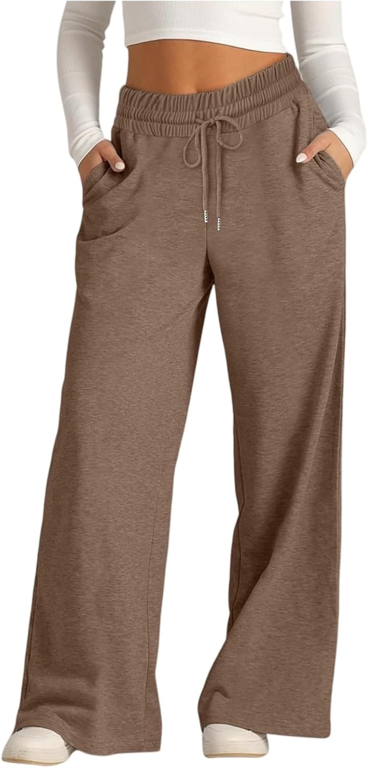Women Wide Leg Fashion Pants with Pockets High Waist Loose Casual Trousers Drawstring Comfortable Sweatpants