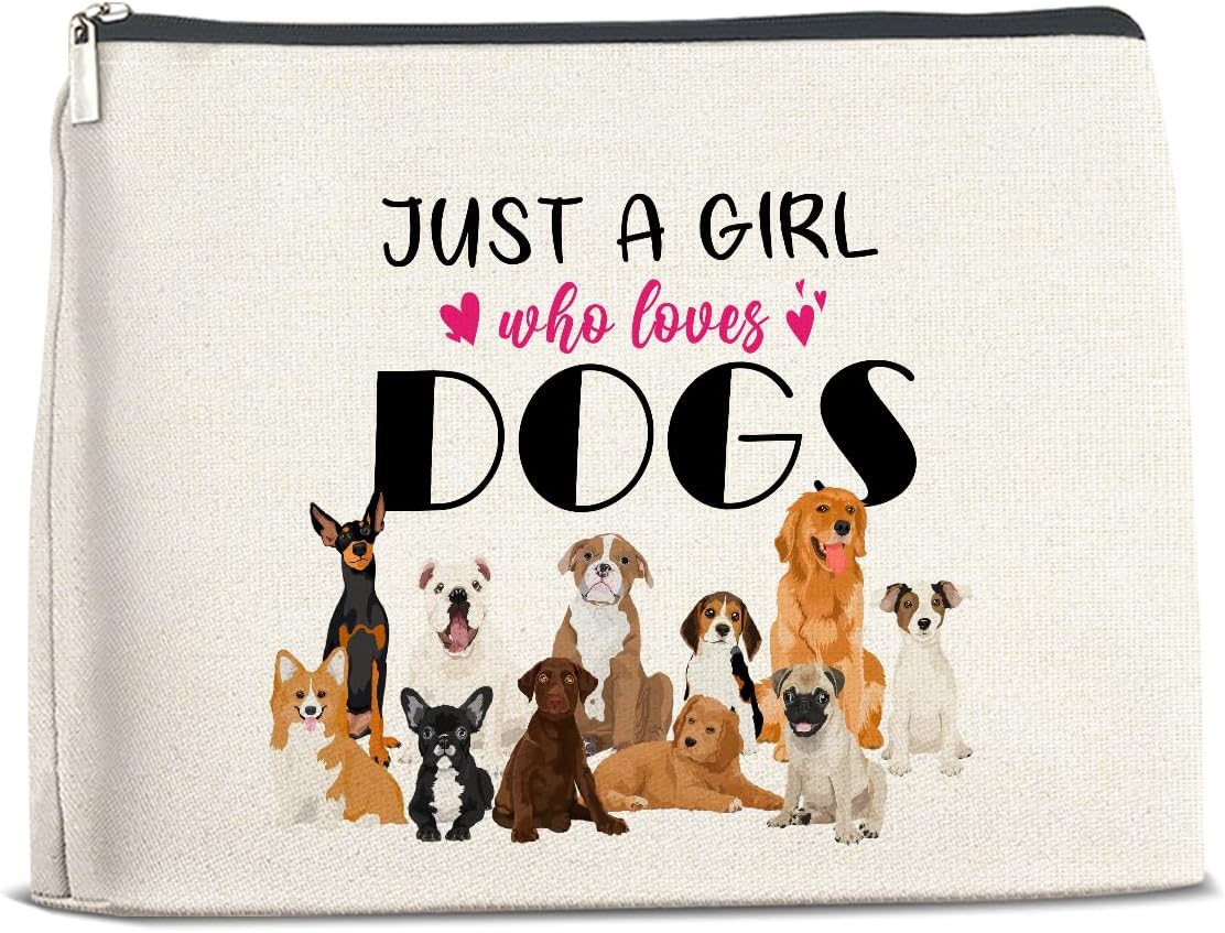 Dog Lover Gifts Makeup Bag - Cute Just a Girl Who Loves Dogs Travel Cosmetic Bag with Zipper, Christmas Gift for Women Dog Lovers