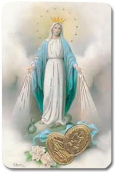 SHERMAN Our Lady of Grace Memorare Laminated Catholic Prayer Holy Card with Medal and Prayer on Back