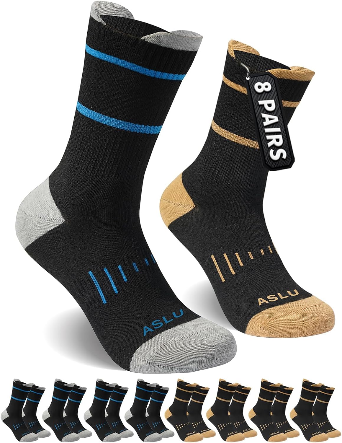 Men's Performance Athletic Socks with Arch Support & Compression Fit - Mid-Calf Workout Socks for Running, Gym, Daily(8Pairs)