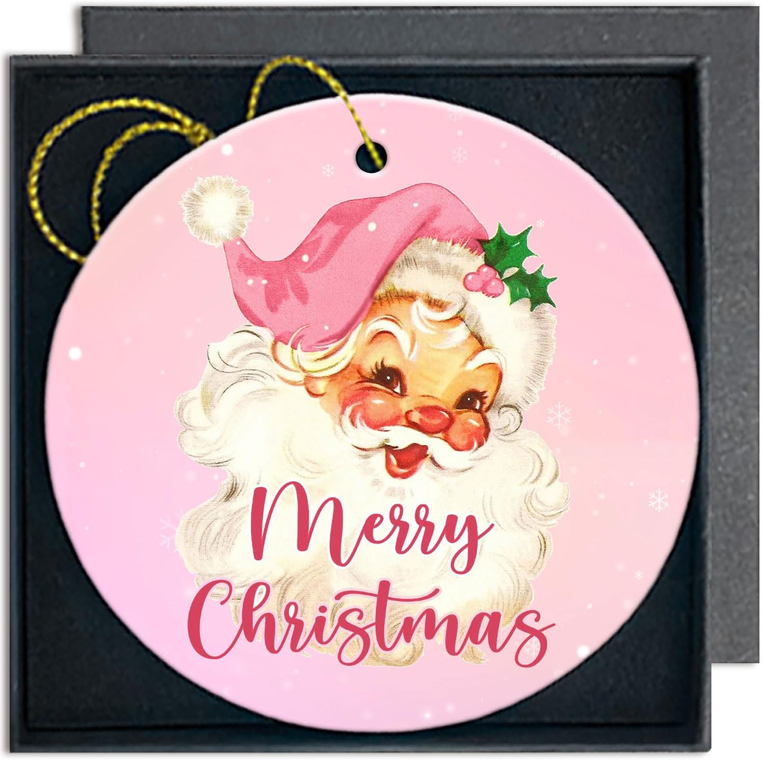 Vintage Santa Ornaments for Christmas Tree - Pink & Merry Decorative Hanging Ornaments