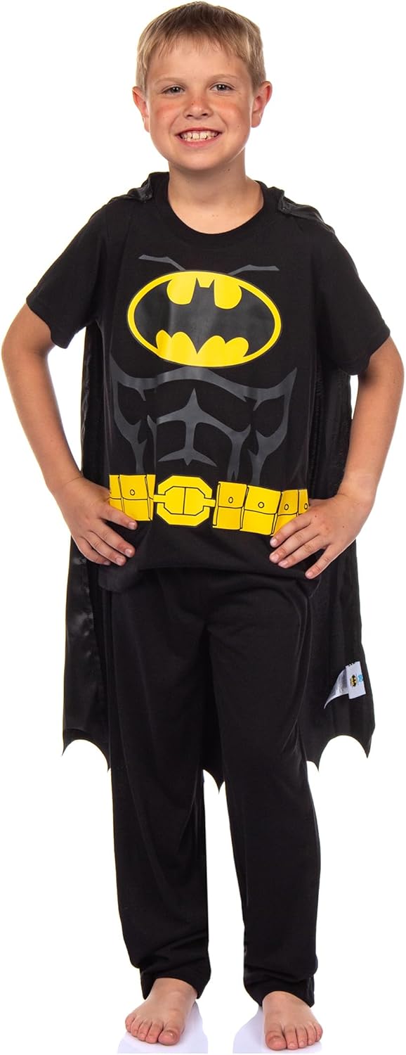 DC Comics Batman Pajamas Boys Short Sleeve Shirt And Pant Set With Detachable Cape PJs