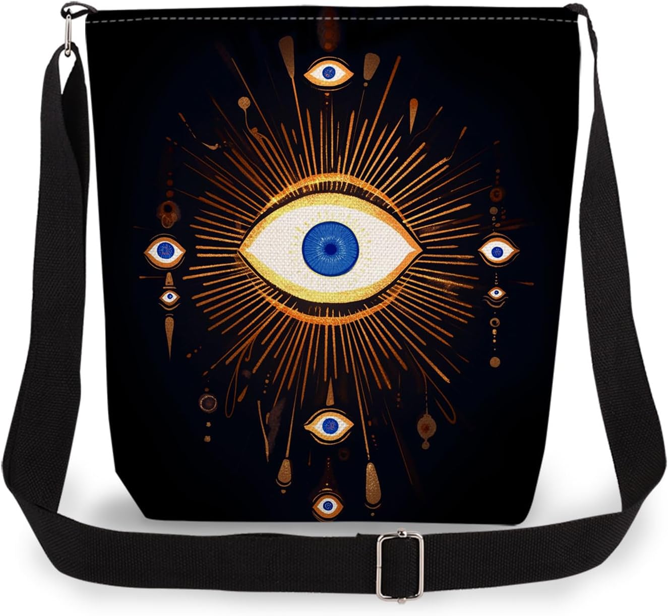 Evil Eye Print Canvas Crossbody Bag, Adjustable Strap Lightweight Purse with Top Zipper & Inner Pocket, Daily Shoulder Bag Gift for Women -1
