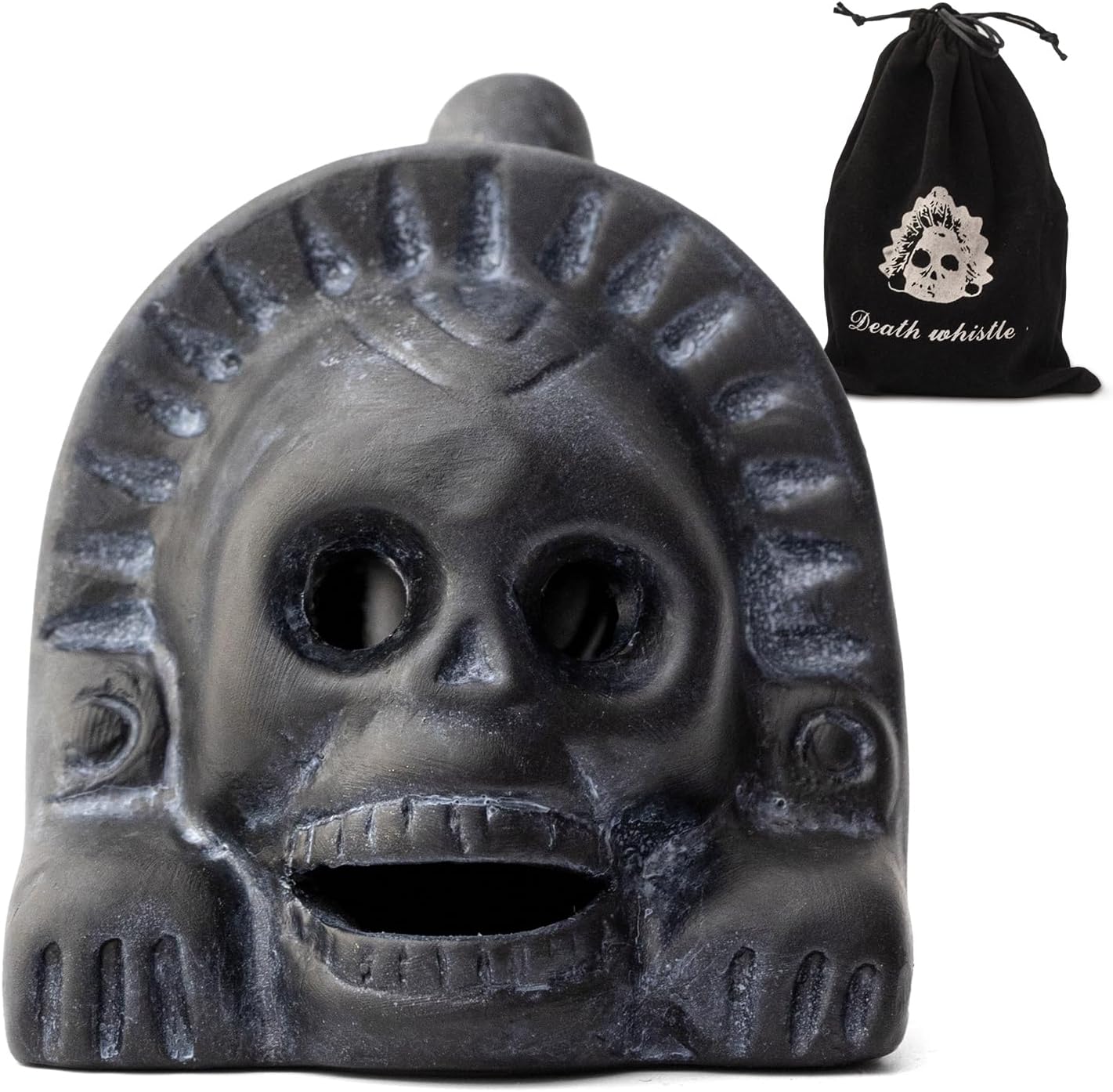 Authentic Aztec Death Whistle - Handcrafted Clay Skull with Ear-Piercing Scream Sound for Horror Films, Halloween Pranks & Spiritual Rituals (Vintage Black)