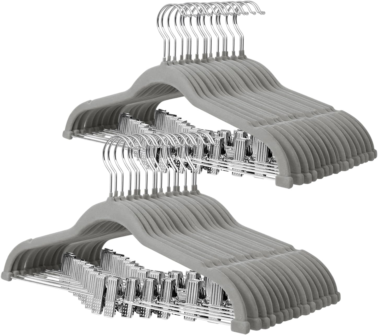 ManGotree Pants Hangers with Movable Clips, Non-Slip Velvet Skirt Hangers, Space-Saving Clothes Hangers for Pants, Skirts, Shirts, Coats, Dresses (32 Pack, Grey)