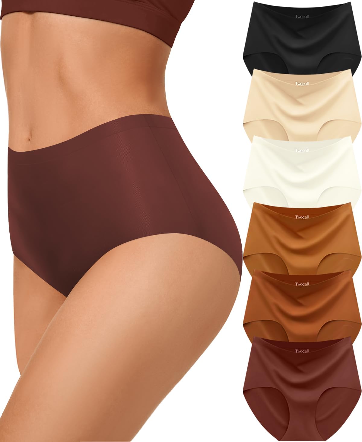 Women Underwear Seamless No Show Full Coverage Briefs Invisible High Waisted Soft Breathable Panties 6 Pack