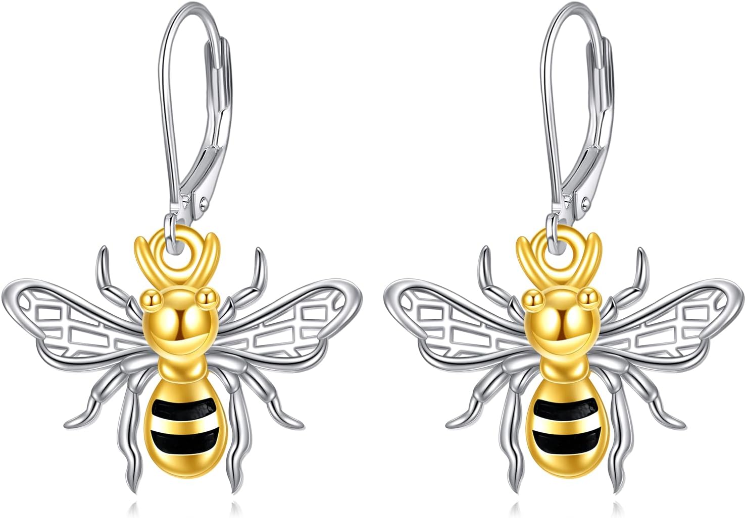 KZX Bumble Bee Leverback Earrings for Women 925 Sterling Silver Dangle Drop Earrings Jewelry Gifts for Mother Sister