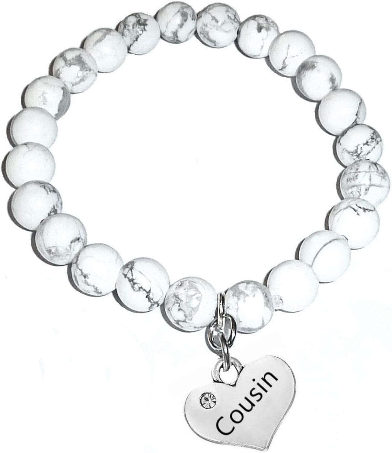 Hidden Hollow Beads Howlite Natural White Stone Women's Stretch Beaded Bracelet, Inspirational Message Charm
