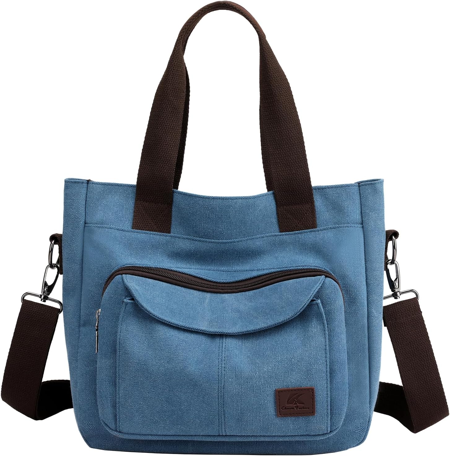 ZHIERNA Women's Canvas Tote Purse Casual Shoulder Crossbody Bags Small Handbag, Multi-pocket Top Handle Work Bag