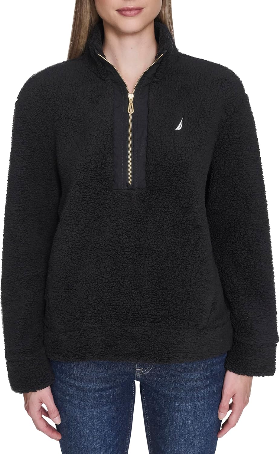 Nautica Womens Mockneck Fleece Sweater Pullover