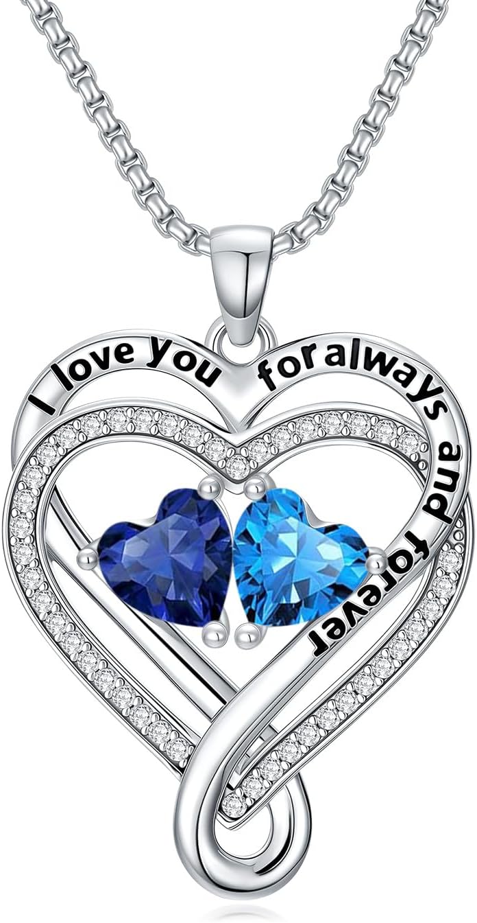 Valentine's Day Gifts for Women Infinity Heart Two Birthstone I Love You Pendent Jewerly Anniversary Women Pendent Necklaces for Her Wife Birthday Gift Ideas Birthday Present for Girlfriend Mom Daughter Yourself