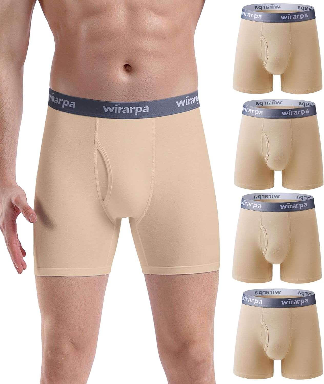 wirarpa Men's Boxer Briefs Cotton Stretch Underwear Open Fly Tagless Underpants Regular Leg 4 PackPack