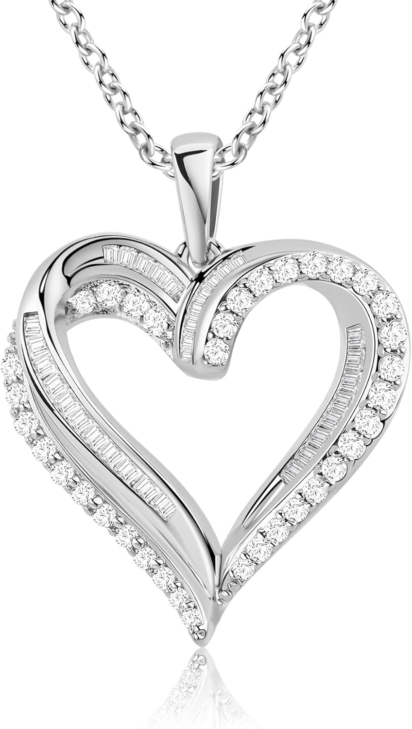 ASHINE Endless Love 1.6CT Moissanite Heart Necklace for Women, 925 Sterling Silver White Gold Plated, VVS1 Clarity Mixed-Cut Pendant