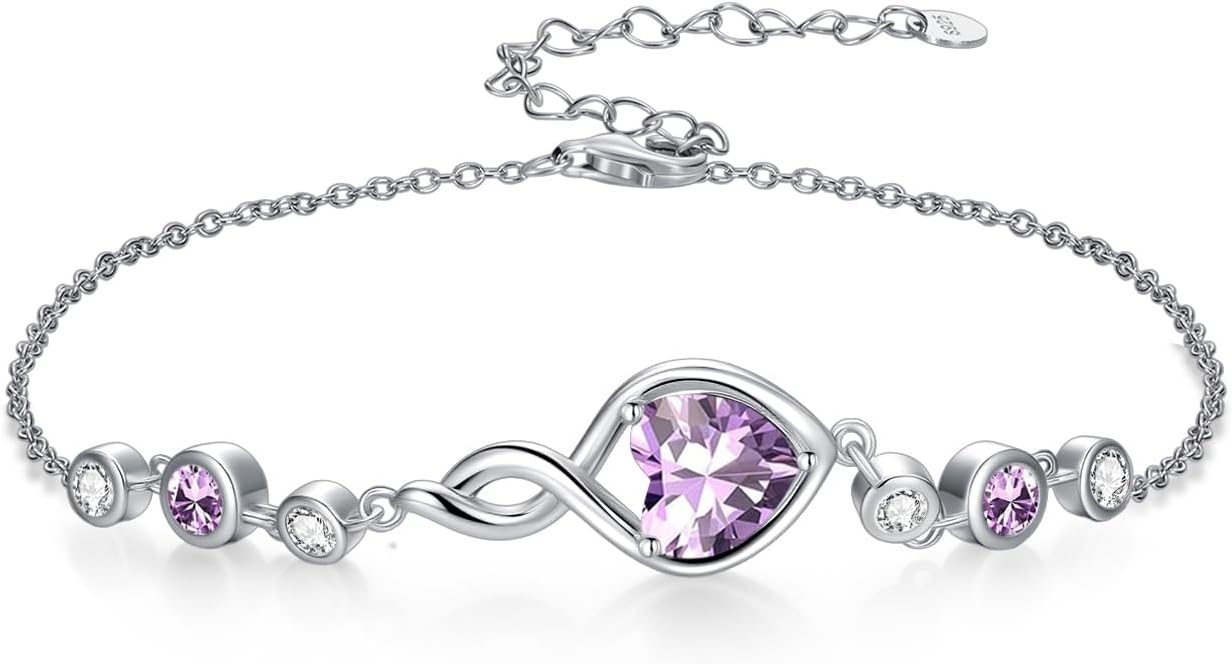 Infinity Birthstone Bracelet 925 Sterling Silver Heart Love Infinity Bracelet Fine Jewelry Anniversary Birthday Gifts for Women Girlfriend Wife Mom