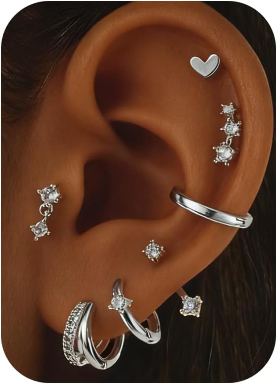 Small Gold Hoop Earrings for Women -7 Pairs Hypoallergenic 14K Gold Plated Stud Huggie Earring Sets for Multiple Piercing Cute Dainty Earring Stacks Cartilage Studs Trendy Gold Jewelry Gifts
