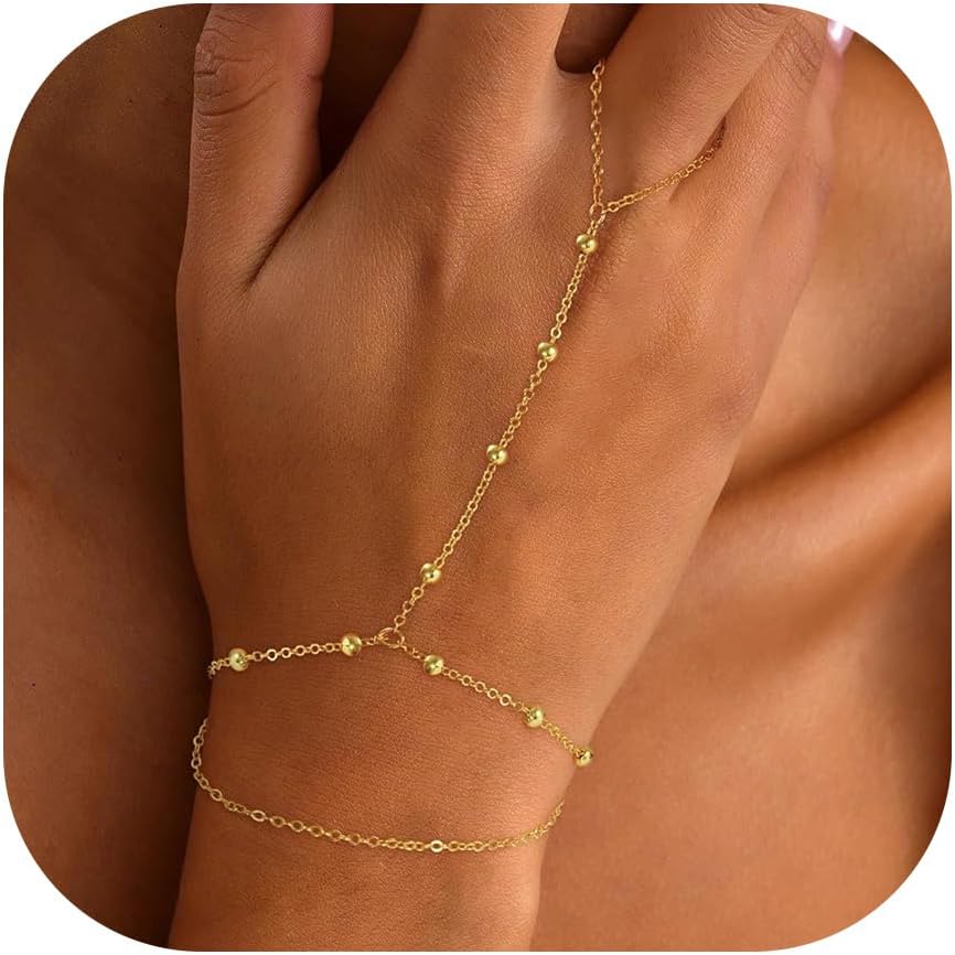 Hand Chain Bracelets for Women 14K Gold Plated Stackable Heart Charm Bracelet Hand Chain Bracelet Ring Heart Cubic Zircon Hand Jewelry for Women Accessories Gifts