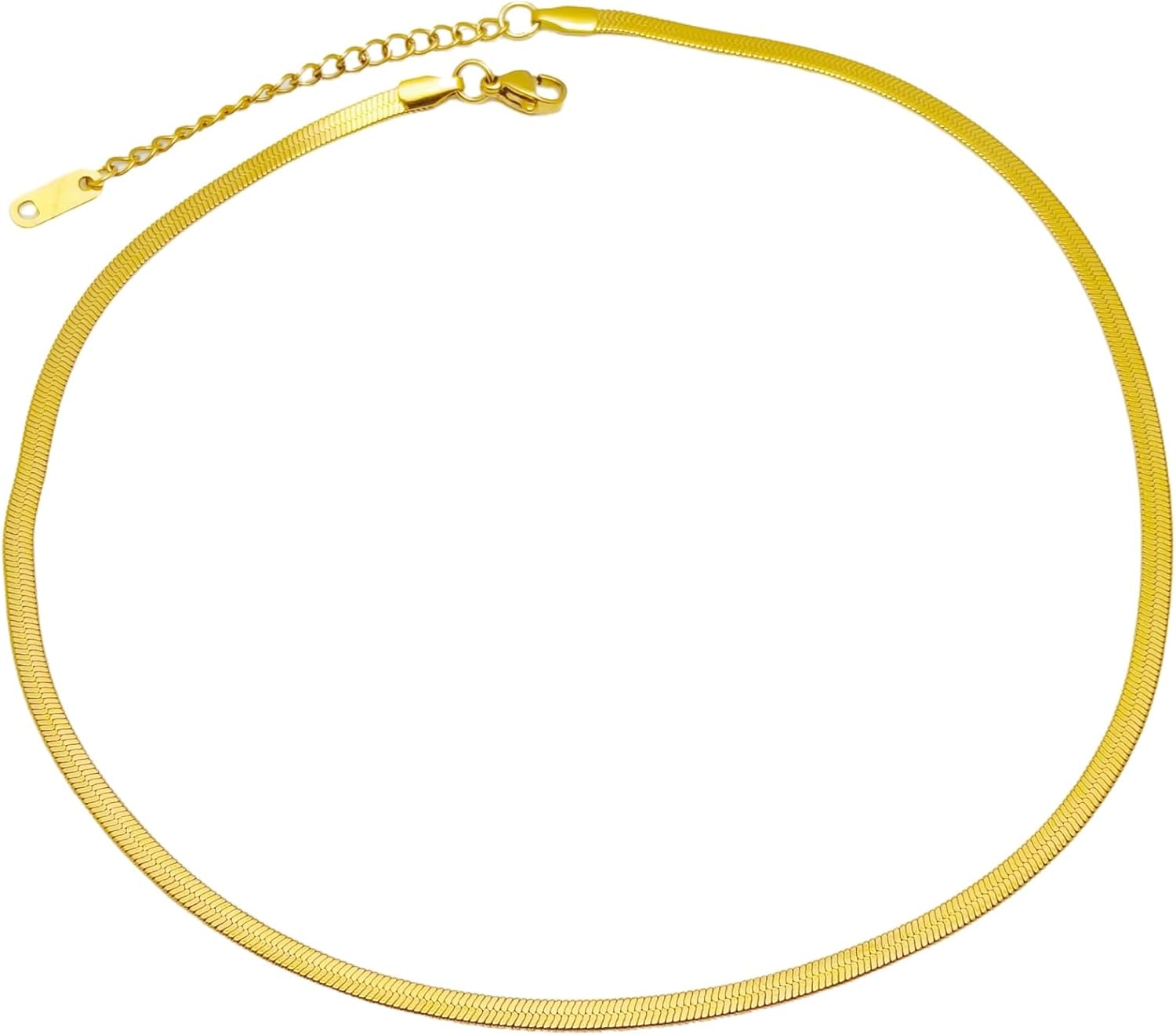 Elegant 18K Gold Plated Herringbone Necklace for Women, Flat Box Chain, Waterproof & Hypoallergenic, Gold Flat Snake Chain Necklace Choker for Women, Ideal Gift