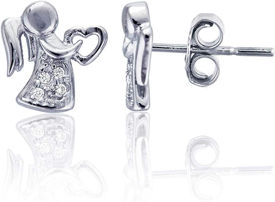 Sterling Silver Pave Hypoallergenic Angel Stud Earrings for Women
