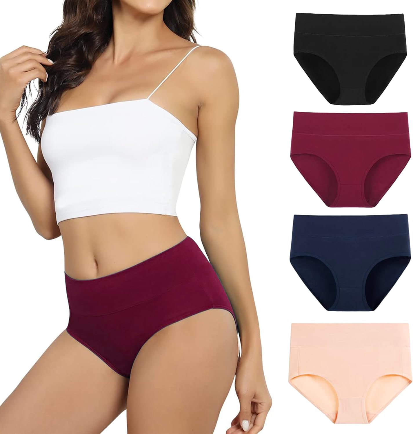 Cotton Underwear for Women High Waist Ladies Panties Breathable Full Coverage Briefs 4 Pack (Regular & Plus Size)