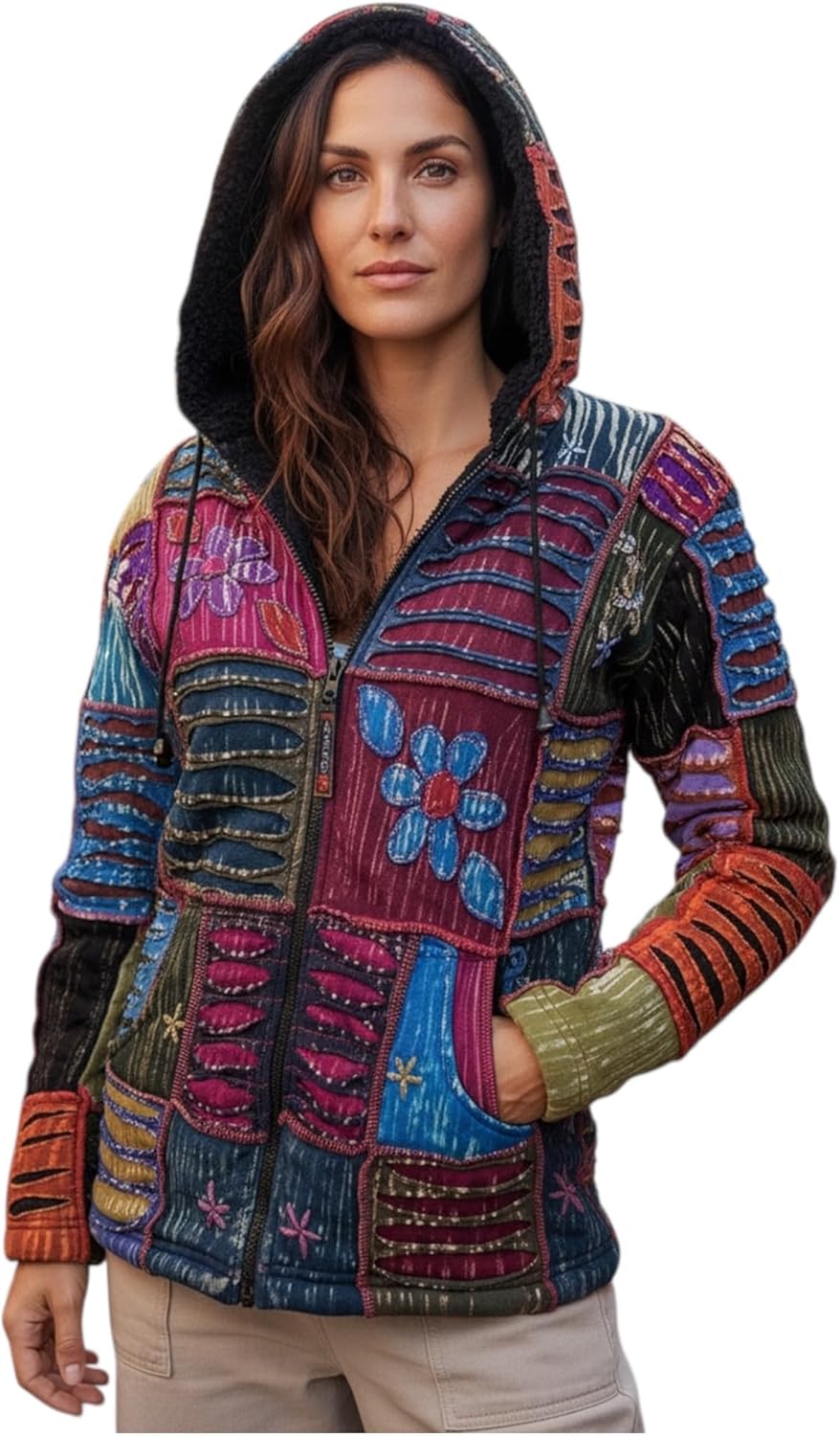 Agan Traders 2026 Embroidered Jackets for Women - Bohemian Gypsy Hippie Patchwork - Fleece Insulated Zip Up Womens Hoodies