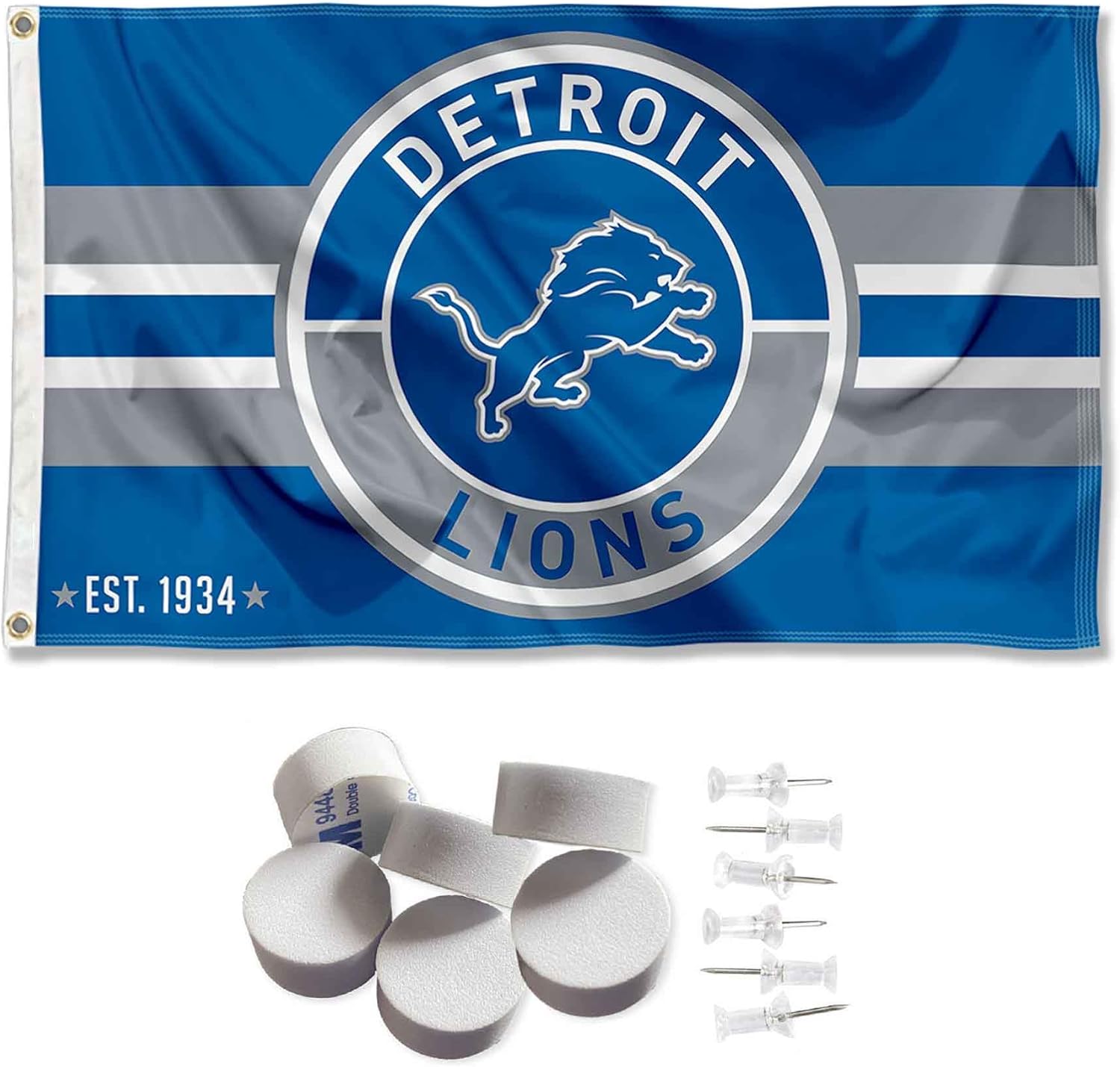 Detroit Lions Patch Button Banner and Tapestry Wall Tack Pads