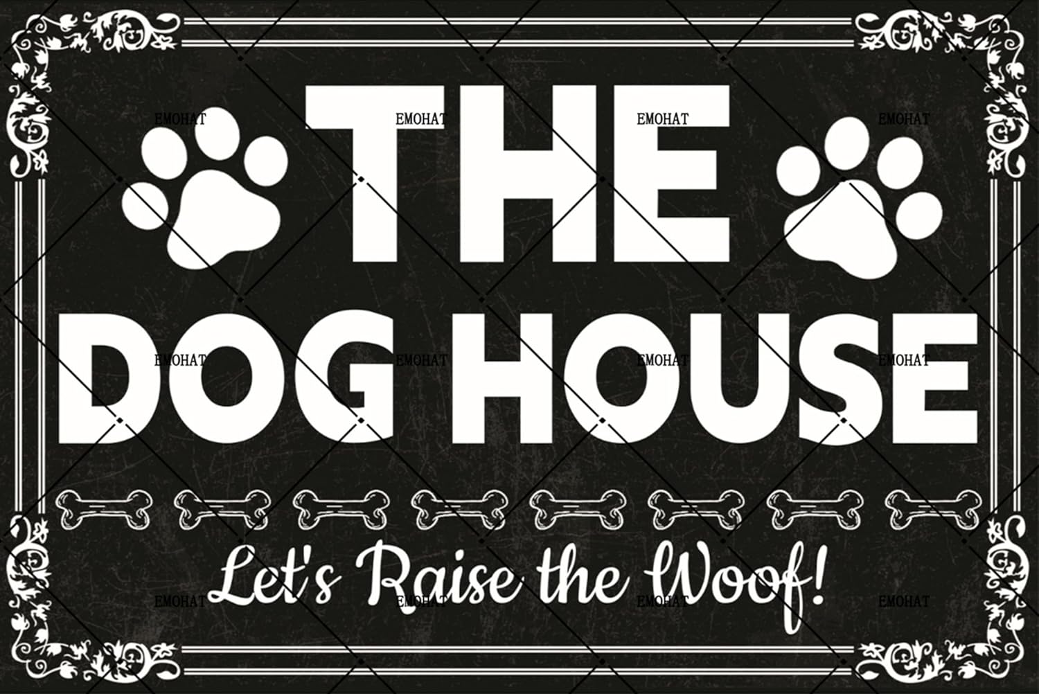 EMOHAT Funny The Dog House Metal Tin Sign Let's Raise the Woof Metal Sign Home Living Room Farmhouse Yard Garden Man Cave Metal Poster Wall Decor Gifts for Dog Lovers Tin Plaque 12x8 Inches