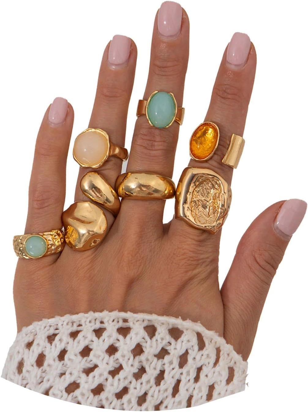 Chunky Gold Rings for Women Trendy Statement Stackable Rings Vintage Bohemian Colorful Crystal Ring Set Unique Stone Open Ring Dainty Prom Jewelry