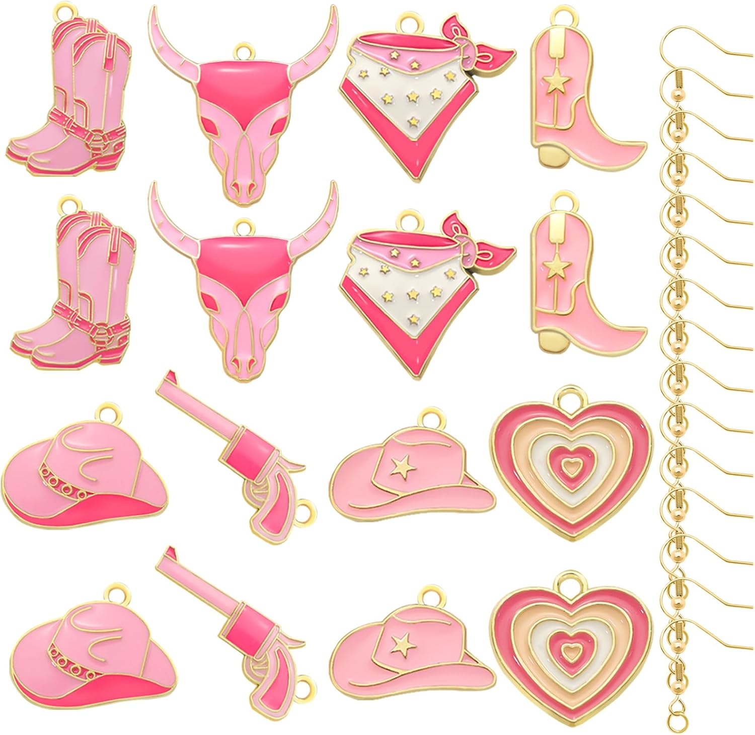 RechicGu 34pcs Western Cowboy Cowgirl Hat Boots charms for jewelry making, Enamel Bull head Heart Pendant Charms for Earrings Bracelet Necklace DIY Crafts