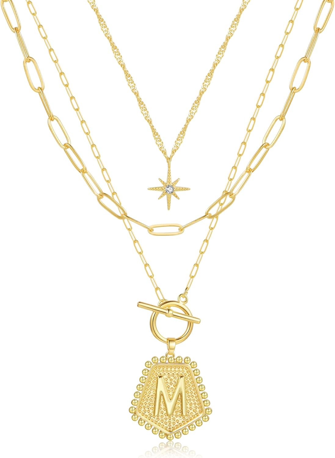 Gold Initial Necklace for Women, 14K Gold Plated Layered Paperclip Chain Necklace Personalized Letter Necklaces Trendy Jewelry Valentines Day Gifts