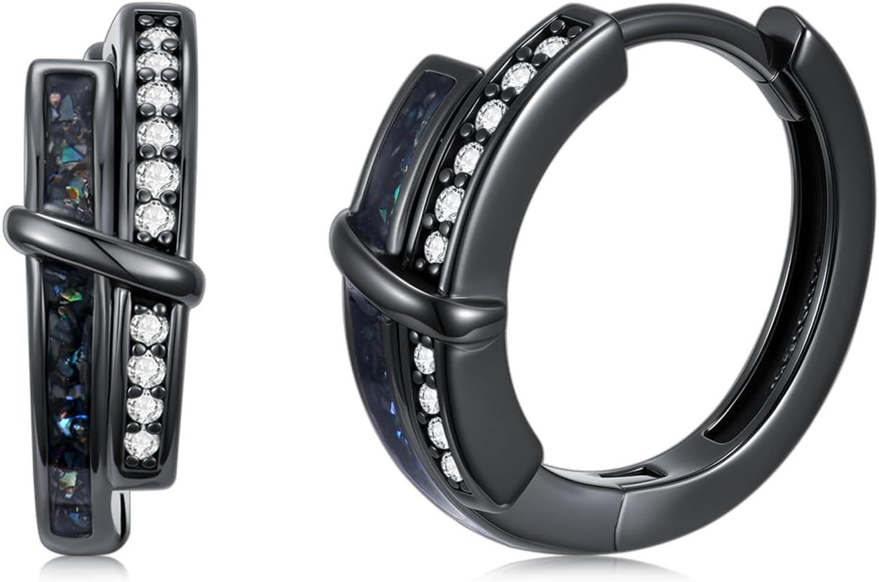 Gothic Hoop Earrings 925 Sterling Silver Black Hoop Earrings Jewelry Birthday Gifts for Men Women