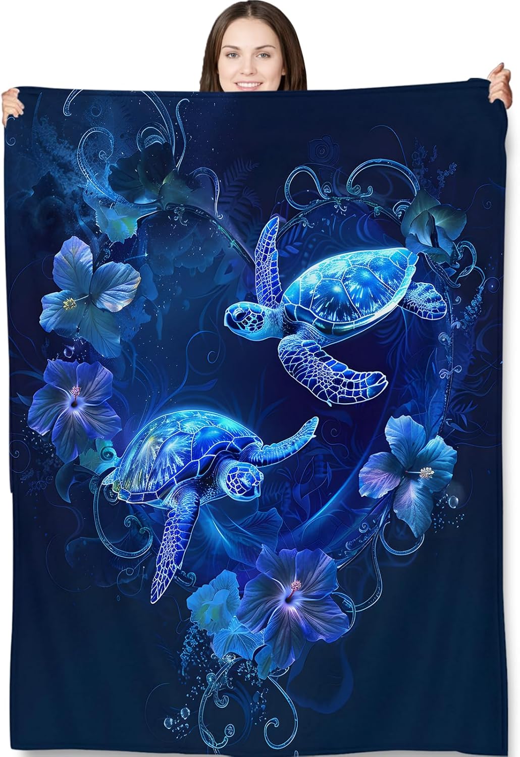 Sea Turtle Throw Blanket for Adults Kids, 50x60 in, Blue Ocean Theme Flannel Blankets for Bedroom, Couch, Travel, Home Decor, Fuzzy Soft Cozy Warm Gifts